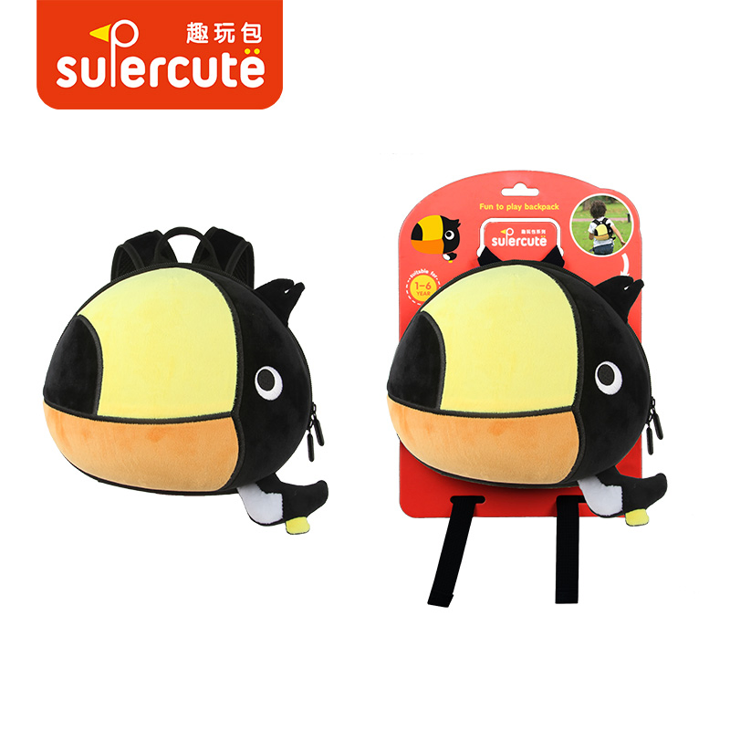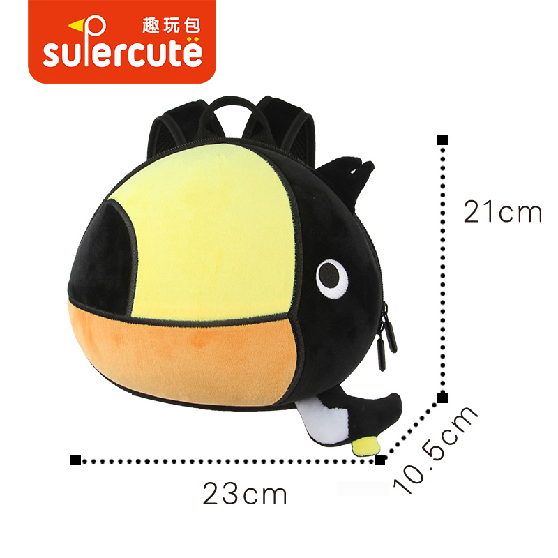 Supercute wholesale Animal Toucan Anti-lost backpack for kids with harness Gender:UnisexPattern Type:CartoonClosure Type:ZipperInterior:Interior CompartmentCarrying System:Air Cushion BeltHandle/Strap Type:Soft HandleMain Material:EVA+PlushFeature:Waterproof, 3D Animal ShapeSize:23*21*10.5 cmLogo:Ac......