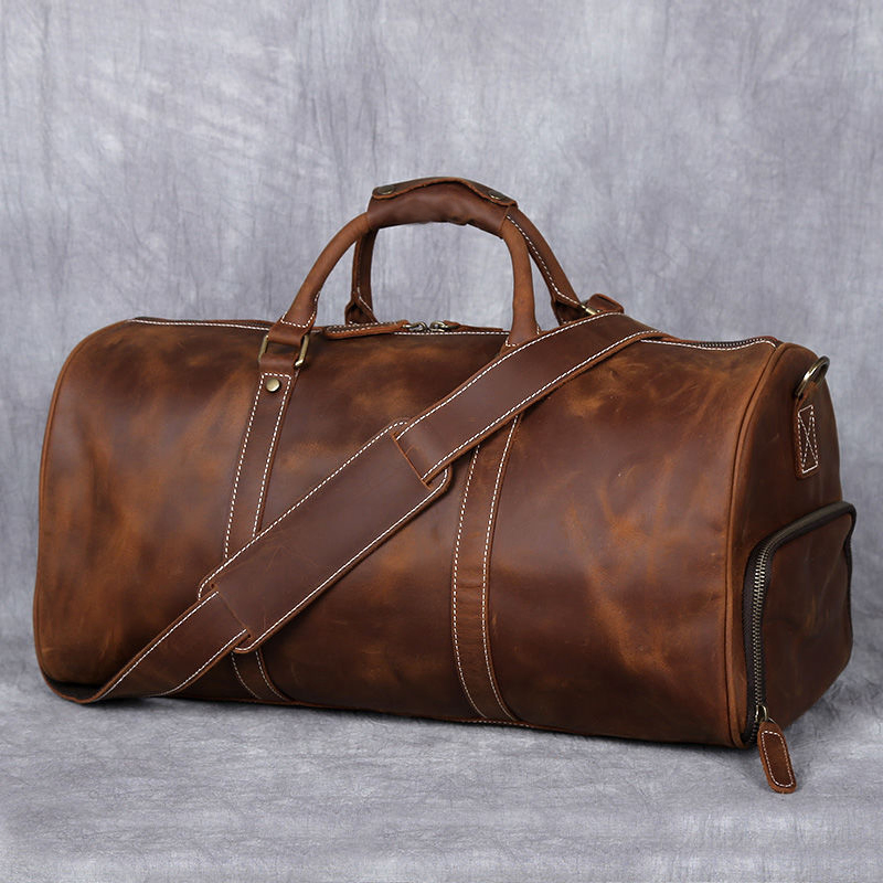 • Crazy Horse Leather Duffel Bag with Shoes Compartment Vintage Brown Real Leather Travel Bag for MenCrazy Horse Leather Duffel Bag with Shoes Compartment Vintage Brown Real Leather Travel Bag for Men